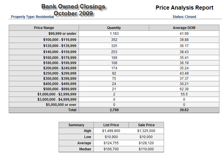 Let’s compare the price breakdown of all bank-owned properties in the Greater Las Vegas Area that closed in the month of October with the Classic or Traditional Closings. First here is the price analysis of bank-owned closings: