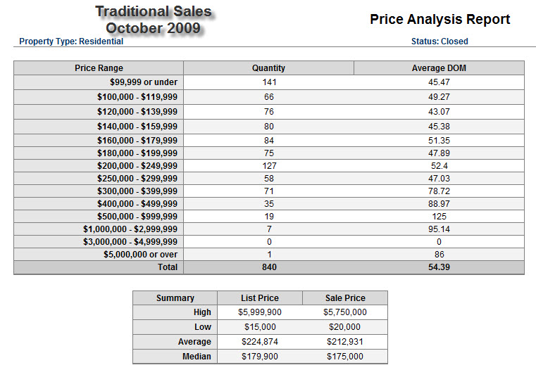By contrast here is the price analysis of the Classic or Traditional Closings. What stands out here is the sales price range of traditional sales and the higher average and median closing prices.