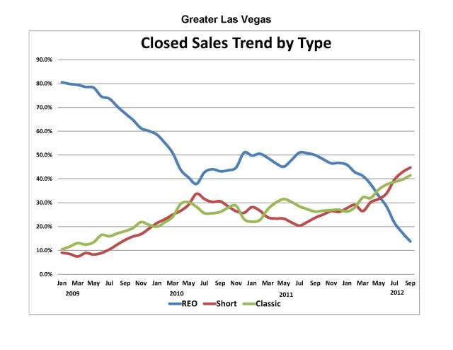 Single family residential (SFR) closings for September 2012 were down 13.3% from August 2012 as well as being down 17.8% from September 2011. Overall inventory continues to increase slowly as it moves towards the 5700 unit level. Most areas in Greater Las Vegas currently have approximately a 6 week supply of inventory. And again the median price of an SFR rose from $138,000 to $140,000 during September.
