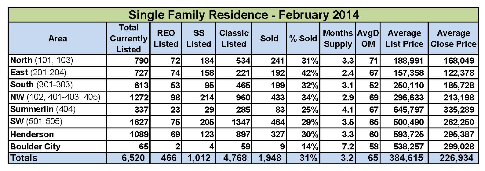 Click Here for Additional Las Vegas Market Update Charts