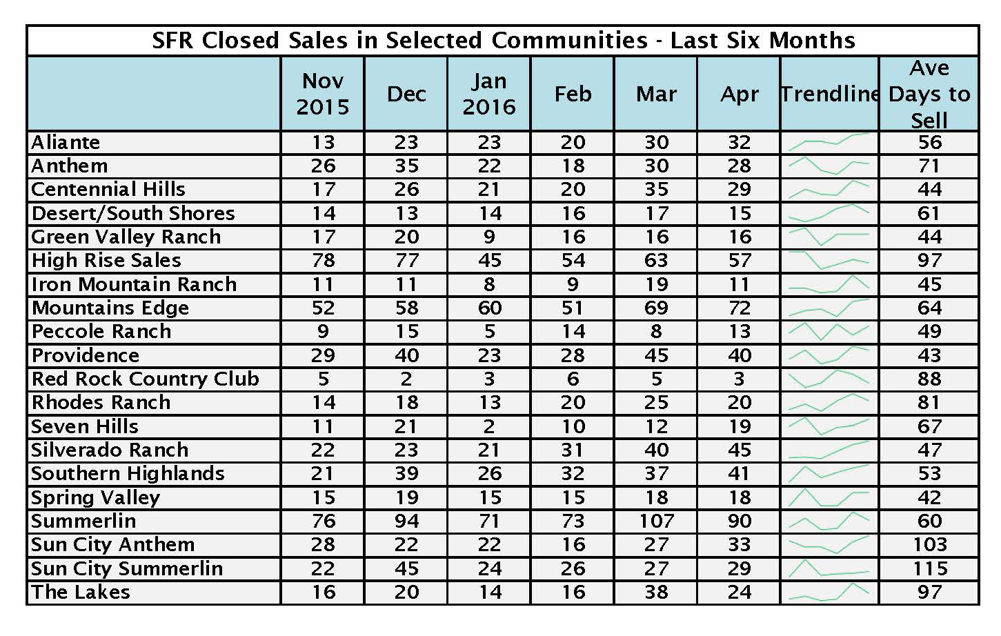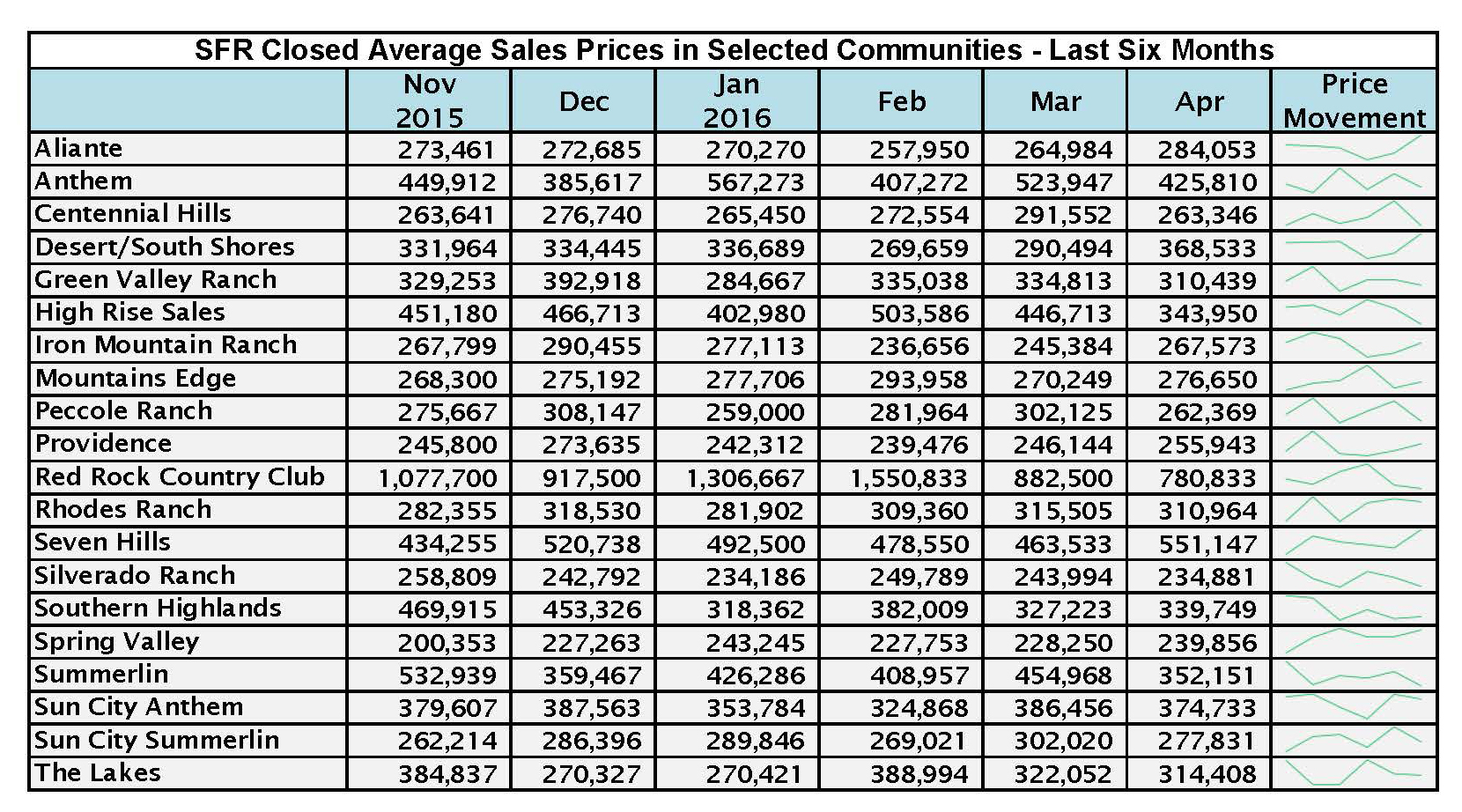 Finally, we have added two charts showing a six month history of sales and price movement in select communities. This helps to show just how local all real estate remains in Las Vegas. It is easily shown that different communities are selling at paces and patterns that may be dramatically different from one another. Please let me know which new charts you like or dislike!