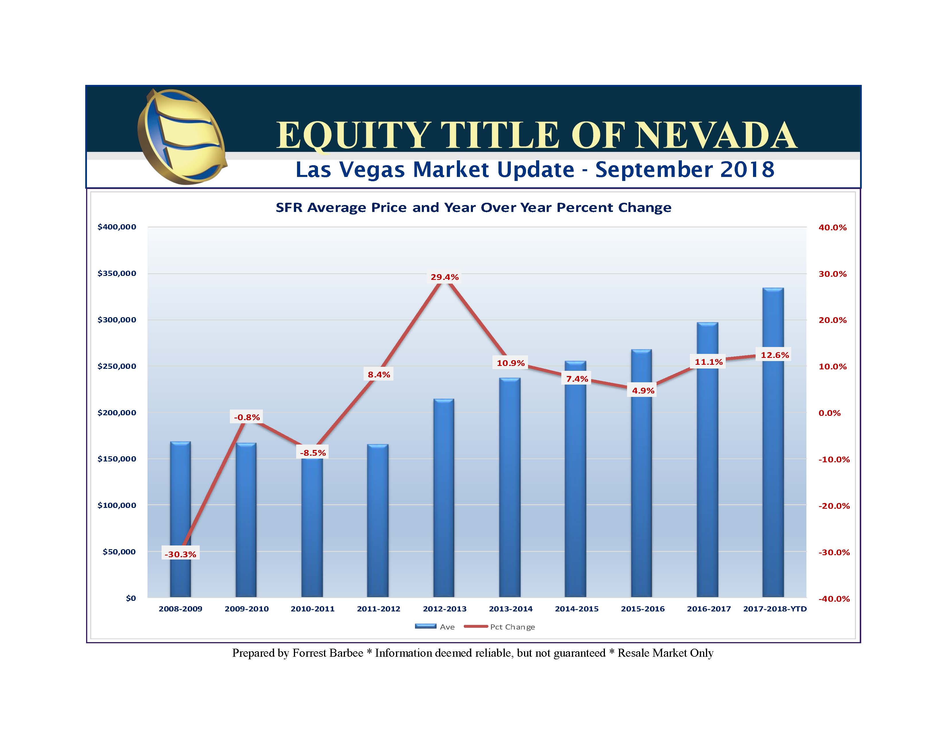 Why is there so much overpricing in the current market? The chart below illustrates that the Las Vegas market has enjoyed 12.8% appreciation year to date. The housing media reports bombard the public with the Las Vegas growth and appreciation numbers. Thus everyone believes that their home has enjoyed double digit appreciation each of the past two years. It has always been and remains a fatal mistake to assume that the broad market numbers apply to my home – across the board. Not true! For example, Seven Hills had a 2017 average sales price for SFR closings of $5787,140 with that number being $591,369 for 2018. That is only a 2.5% increase in market value over last year. On the other hand, Summerlin’s average closed sales price for 2017 was $483,788, but that has improved in 2018 to $571,210 – for an 18.1% market improvement over last year. All real estate is local, so take time to find out what is going on in each community or subdivision. Do not rely upon the broad market statistics!!
