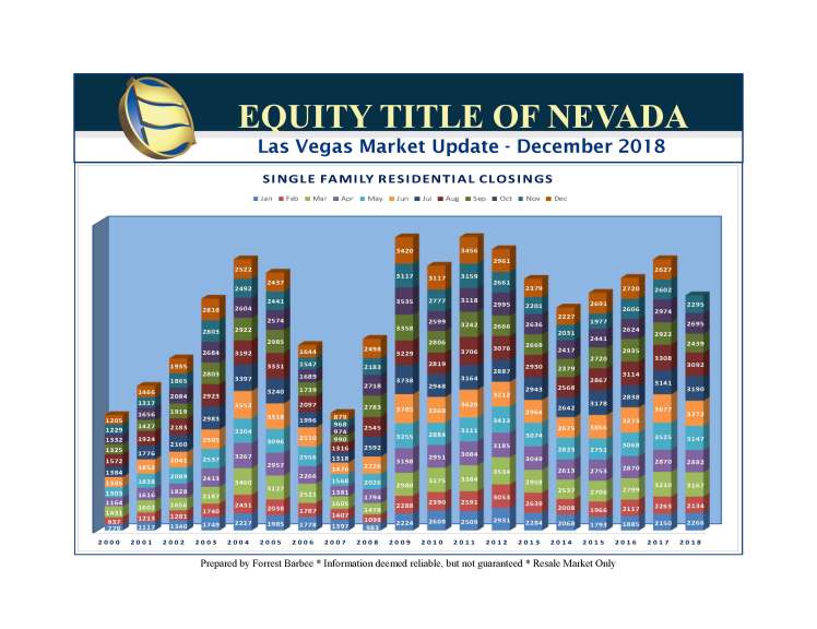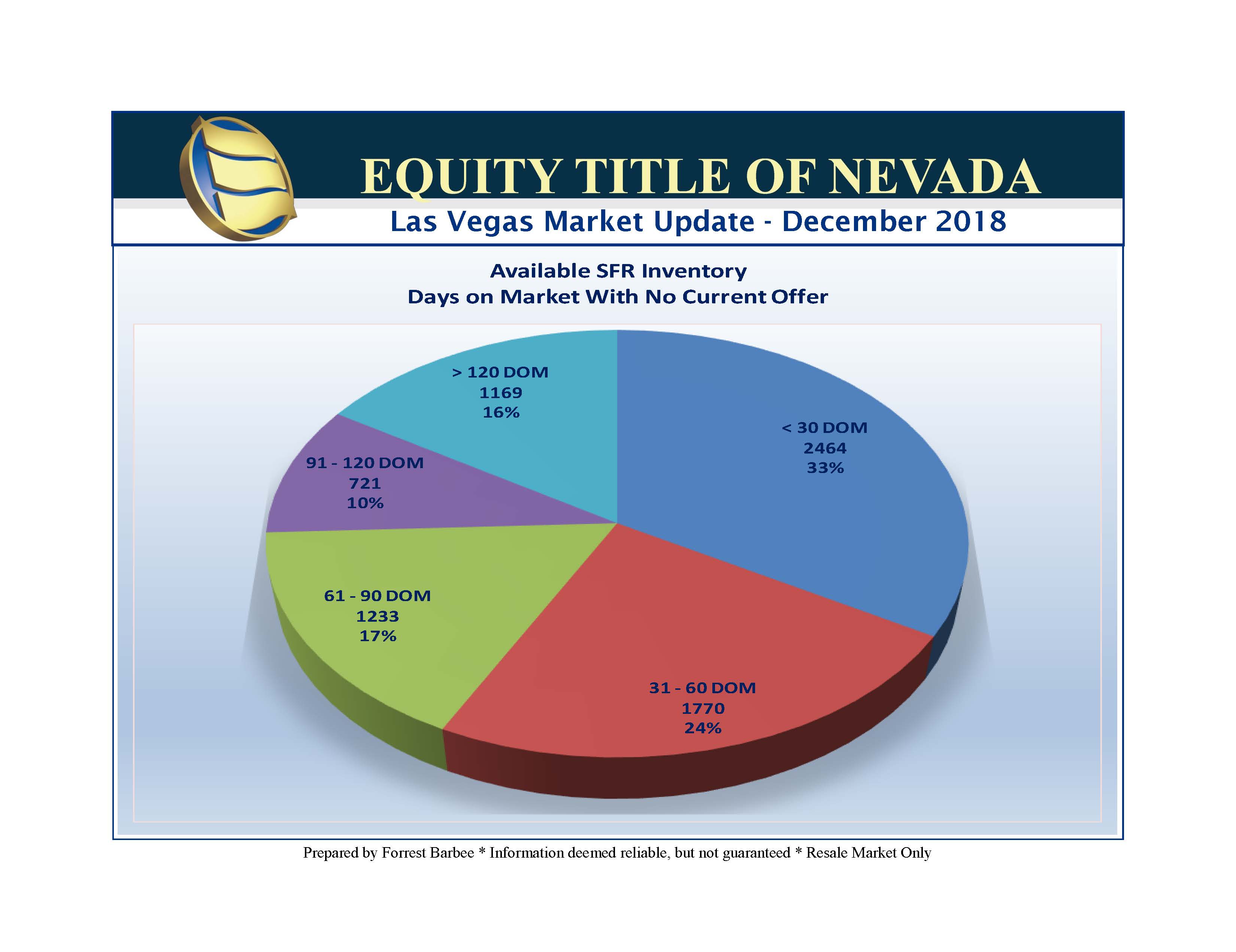 The Las Vegas real estate market in November struggled once again and lost ground from last year. In fact, it now appears that 2018 will end up much like 2014 or 2015, which would make it the first year the market has retreated in three or four years. November Single Family Residential (SFR) closed sales were down 14.8% from October 2018 and down 11.8% for the same period last year. The SFR median sales remained flat at $295,000 while the SFR average closing price retreated to $341,843 for a 2.6% drop from last month. Residential inventory continues to rise leaving the SFR market with 3.2 months of inventory. Unfortunately, the amount of SFR overpriced listings rose sharply to 67% of what is available. So let’s take a closer look at that!