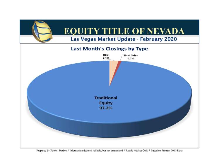 January 2020 jumped out of the gate 24% ahead of January 2019! In fact, this is the best start that the Greater Las Vegas residential resale market has experienced since January 2012. January 2020 SFR closings were down 12.57% from December but up 25% up from January 2019.