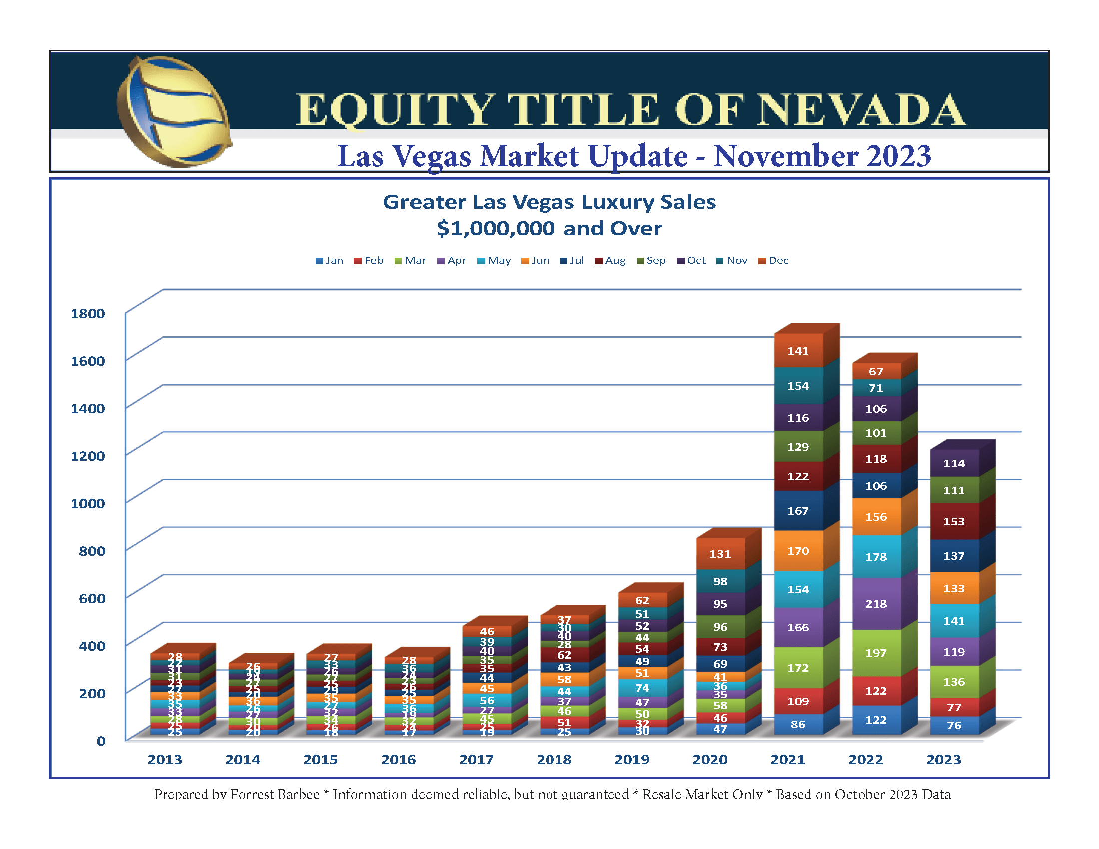 Resale inventory improved to 3.5 months due to fewer closings and fewer listings taken.