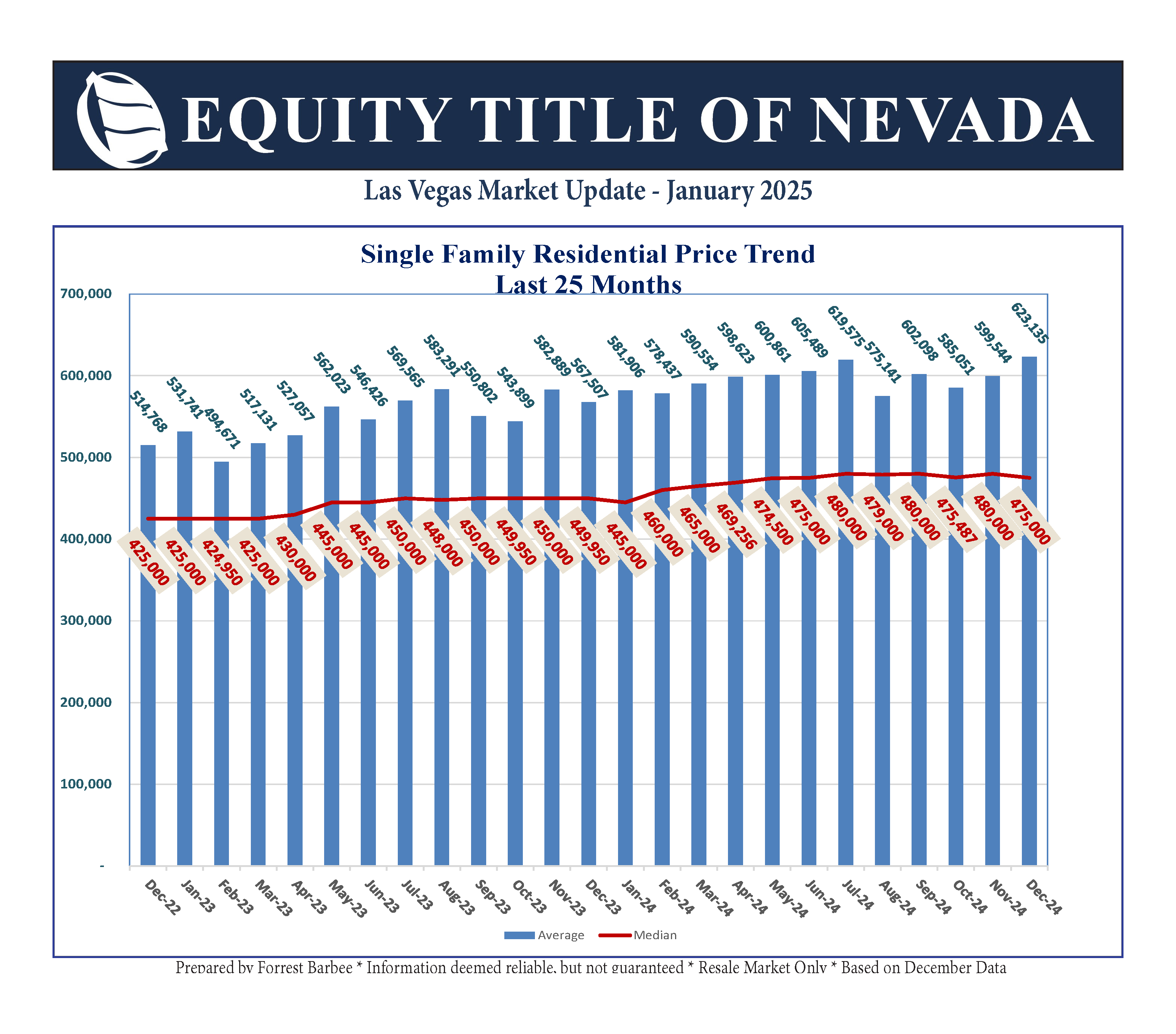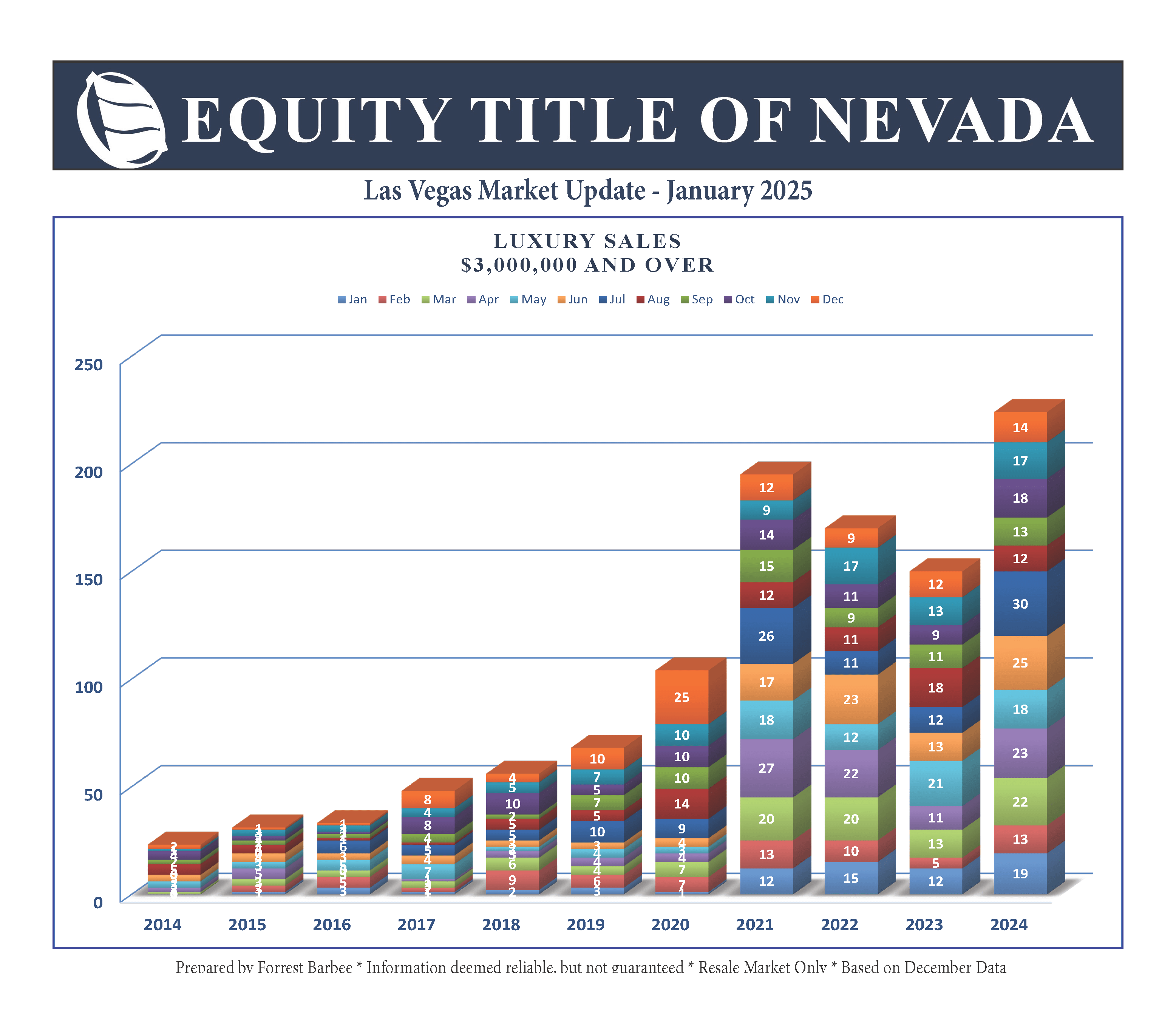 The Greater Las Vegas real estate market enjoyed a December surge of closed sales to boost 2024 sales over 2023 sales. 2024 total closed sales ended up at a 2006 level but is the first time in three years that we witnessed a year over year improvement in residential sales.