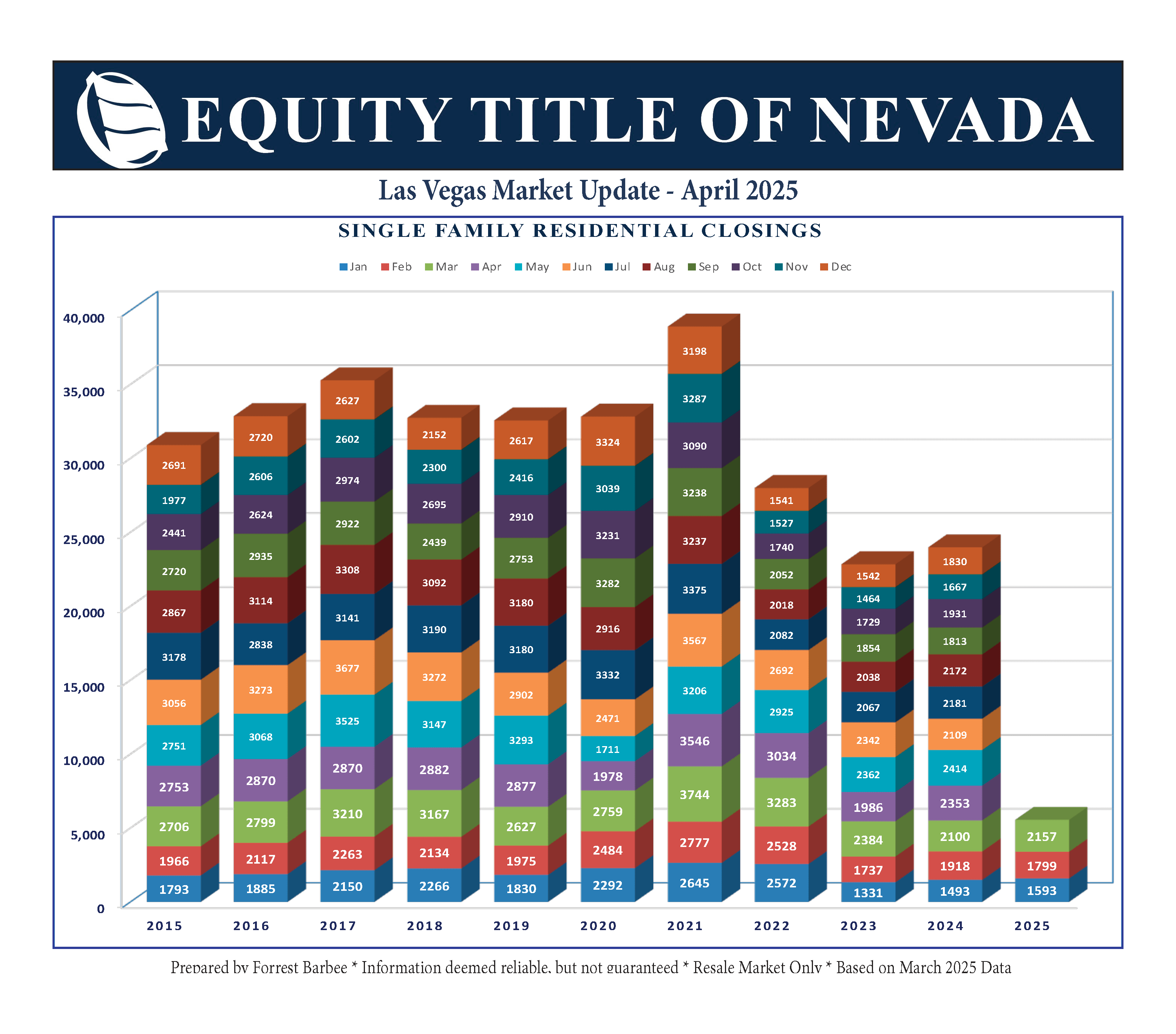 The Greater Las Vegas real estate market in March showed improvement over the first two months of 2025. but was down approximately 200 units from February 2025. Overall, units are only down 1.7% year-to-date, while volume is up 2.9%.