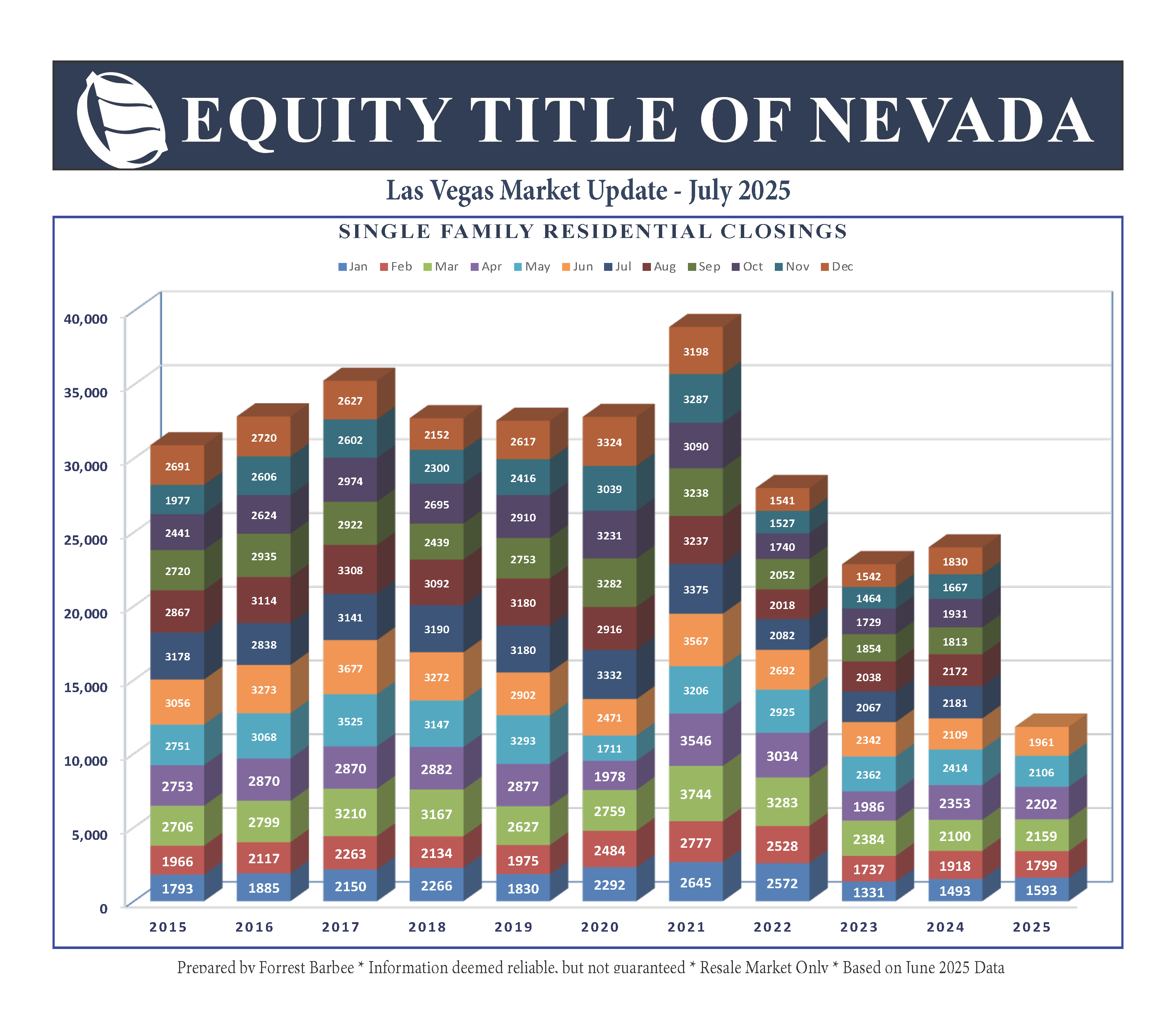 The Greater Las Vegas real estate market stalled again in June – noticeably, leaving 2025 closed units 6.9% behind 2024 and closed volume down 3.4% from 2024.